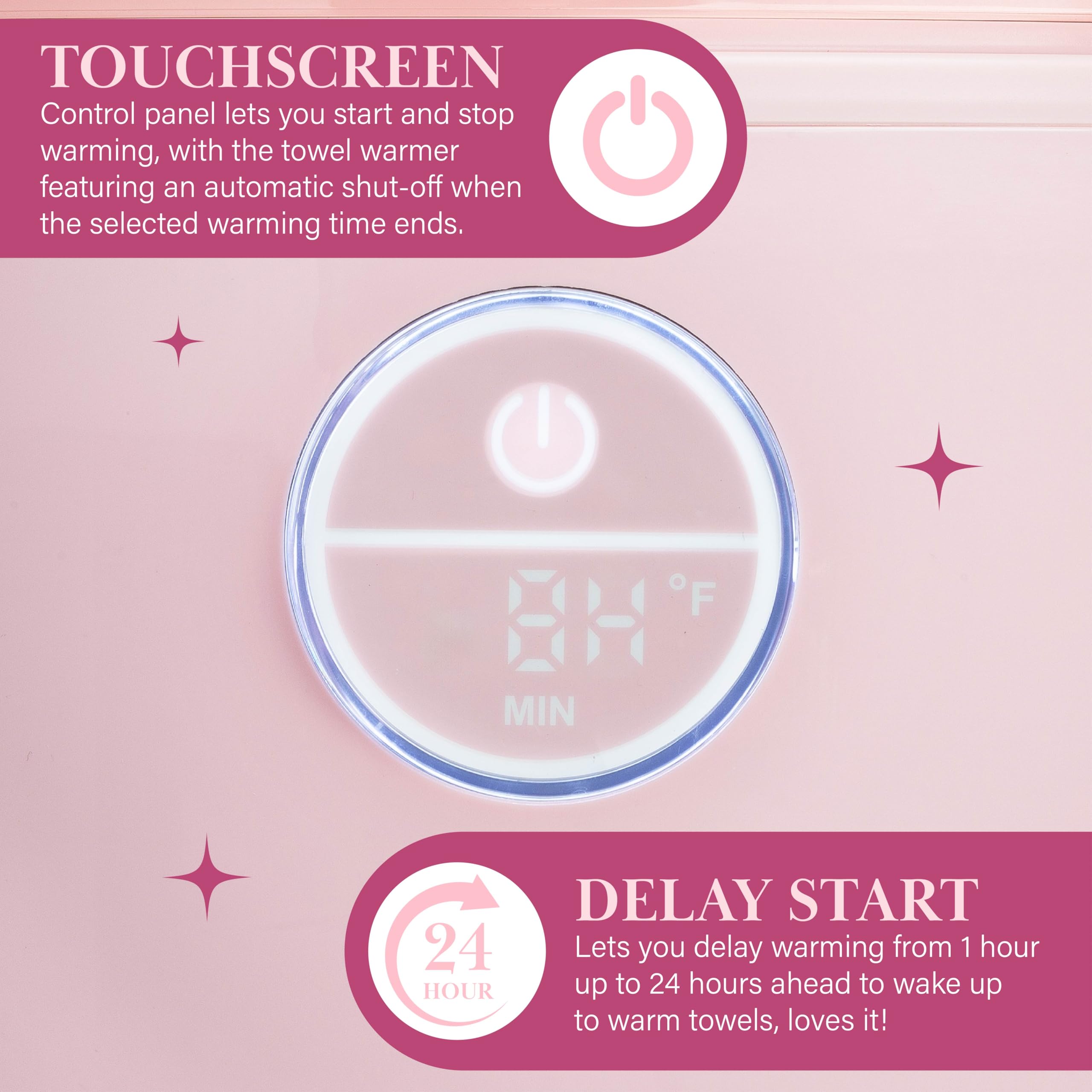 Paris Hilton 20L Luxury Towel Warmer, Built-In Aromatherapy Compartment, Touchscreen Control with Delay Start Timer and Preset Timers, Fits 2 Bath Towels or Throw Blanket, Pink