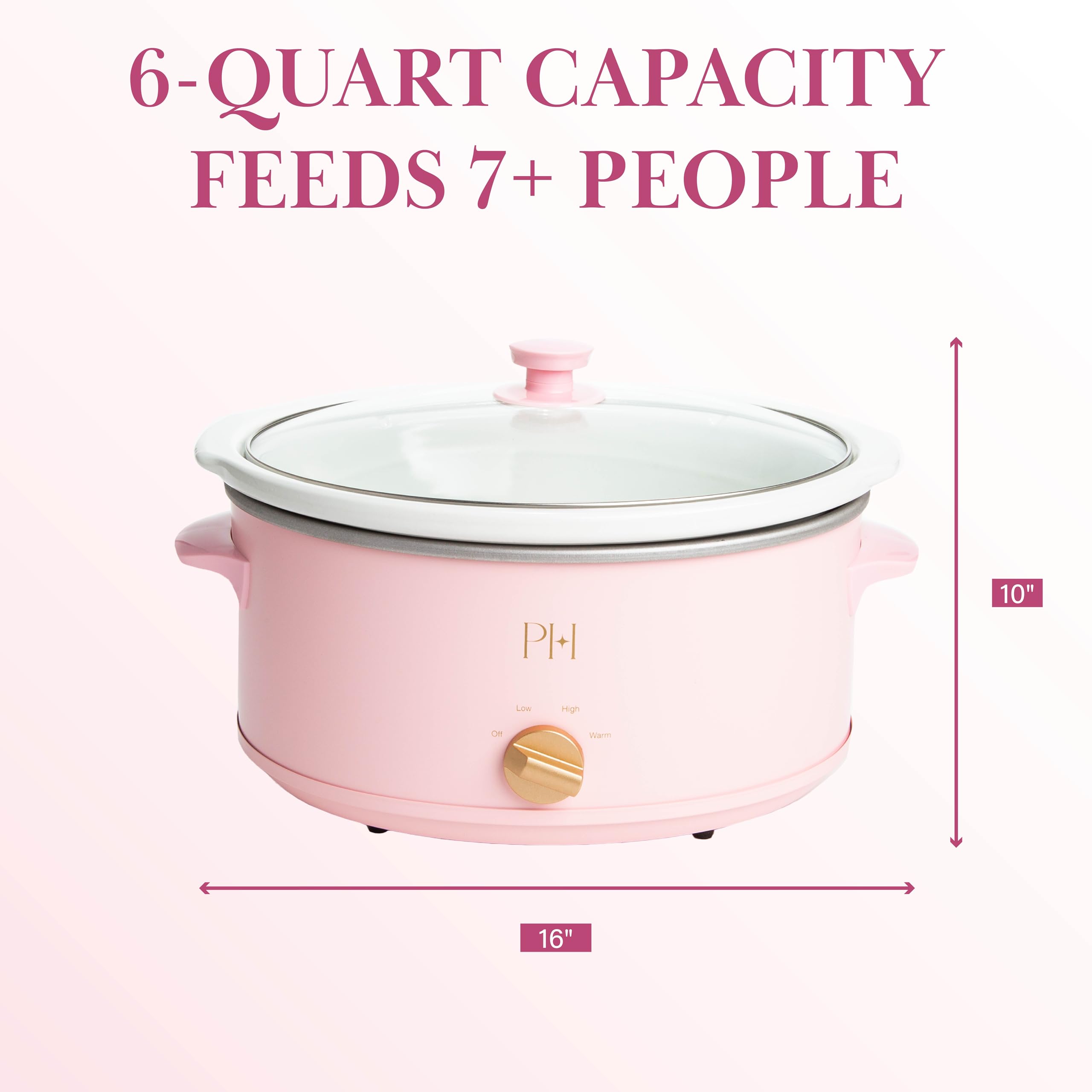 Paris Hilton 6-Quart Manual Slow Cooker, Features Three Settings (Low, High, Warm), Naturally Nonstick and Dishwasher Safe Stoneware Insert, Family Sized Capacity, Pink