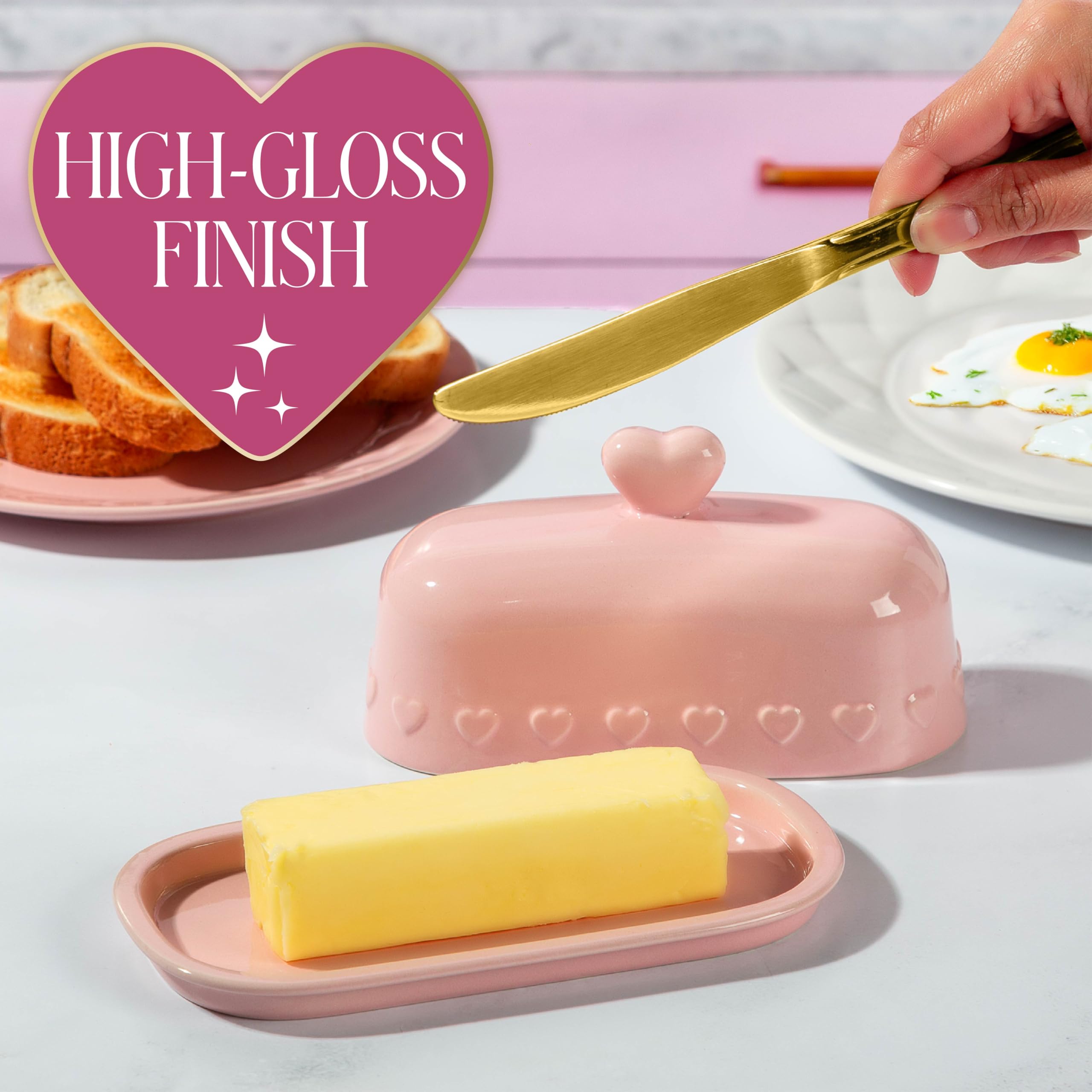 - PERFECT FOR SERVING: Ideal for family dinners, brunch spreads, charcuterie boards, and everyday meals. This charming butter dish keeps butter fresh, covered, and ready—adding a touch of elegance to any occasion.