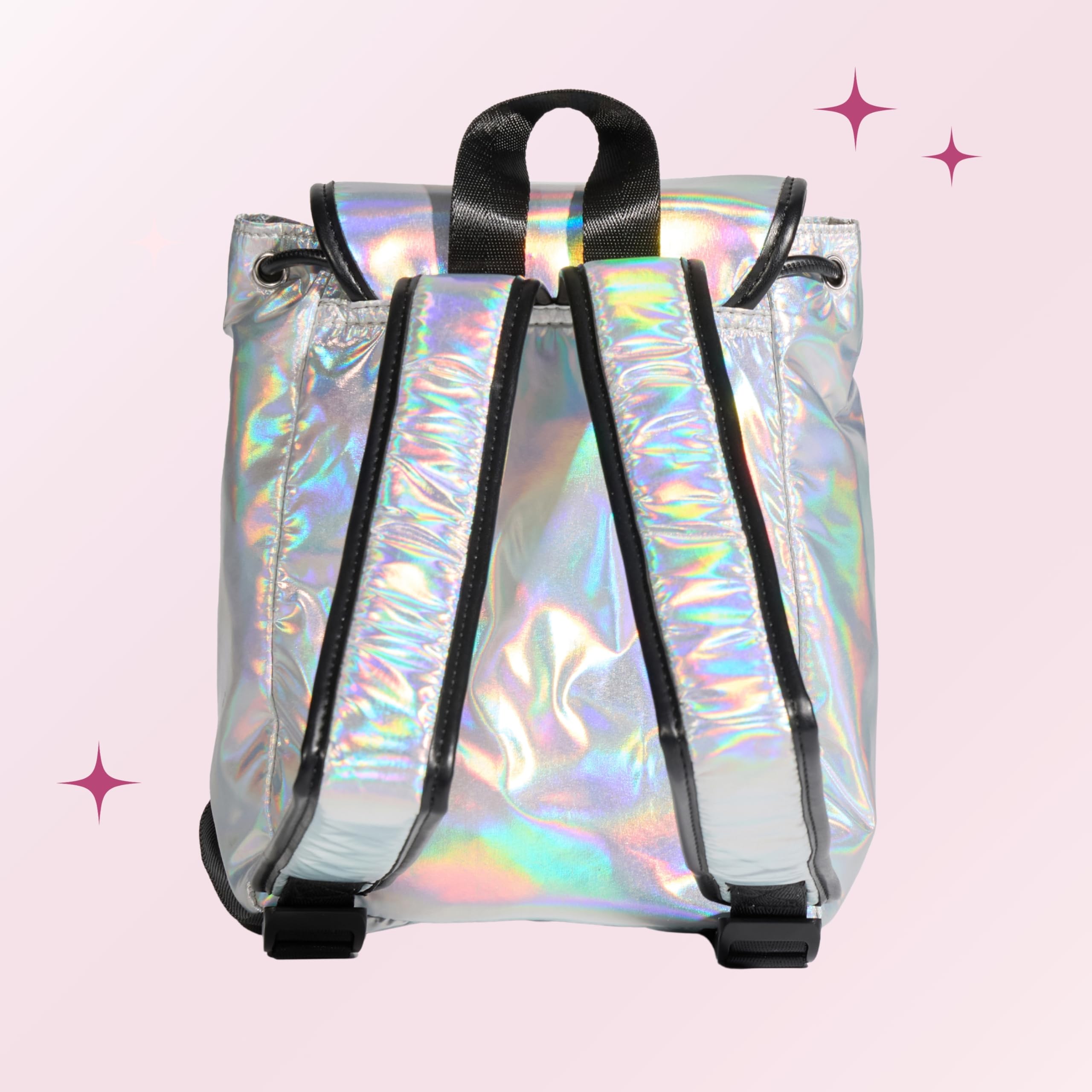 Paris Hilton Paxton Small Drawstring Rucksack Fashion Backpack, Iridescent Silver