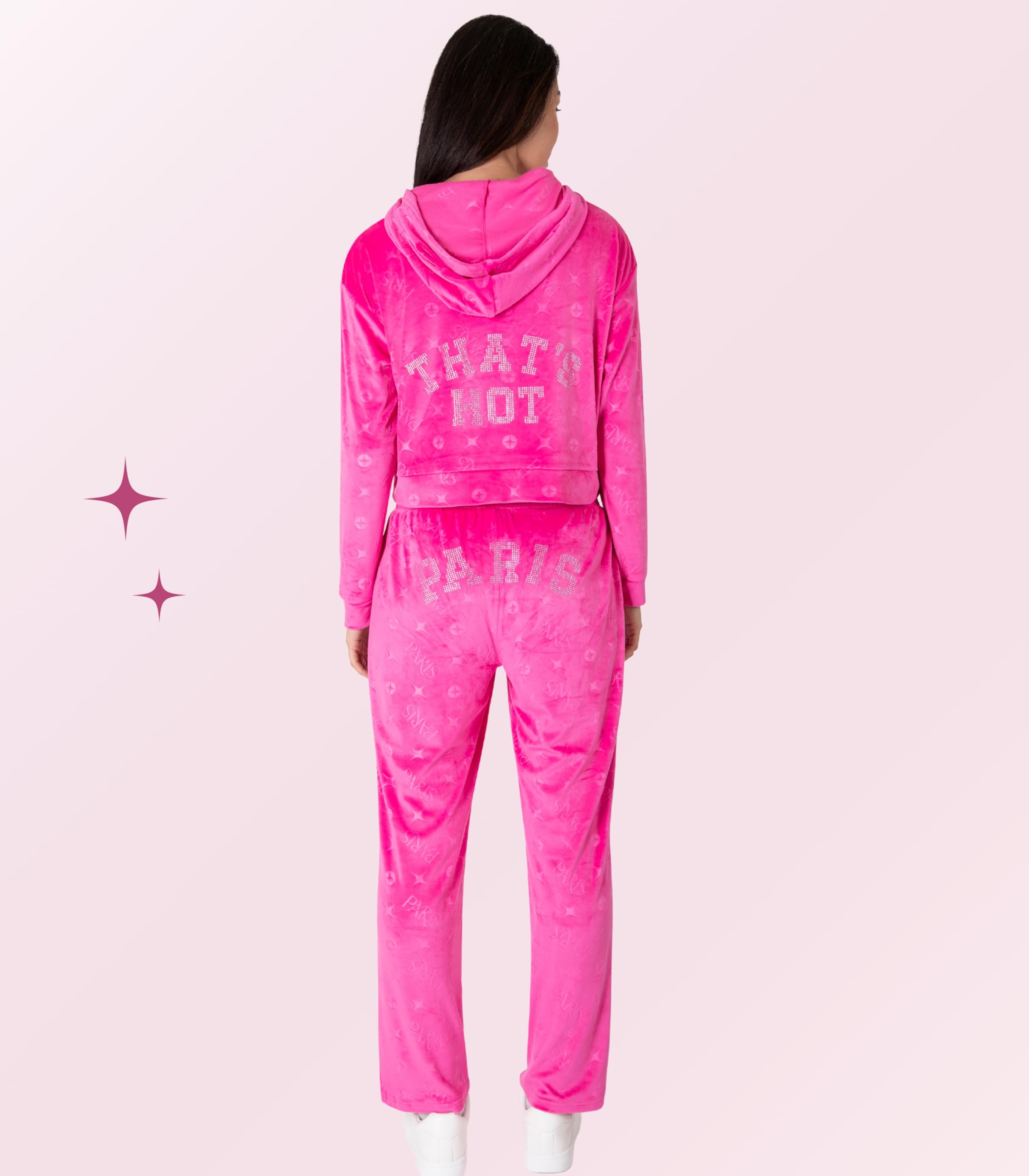 - Sliving is easy in gorgeous loungewear from Paris Hilton. Coming in hot with epic embellishments and fabrics like iconic velour and cozy fleece, these styles are basically made for a bachelorette weekend with matching outfits or a night in with wine and face masks. Coordinating separates like fleece jogger sweatpants and zip-up hoodies or 2-piece velour sets will have you looking like a boss babe in no time.